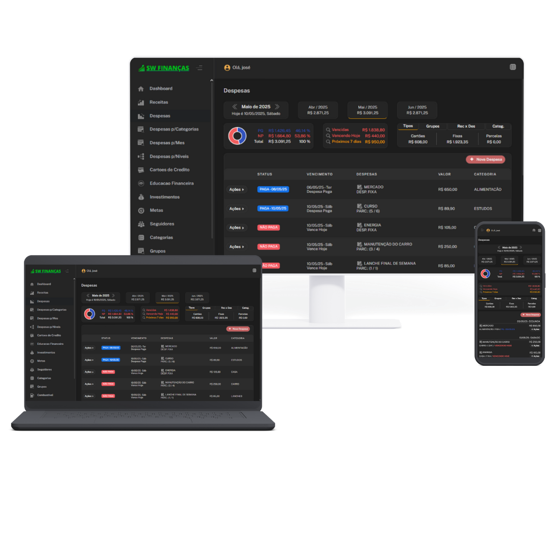 Cansado de ter a sensação de que o dinheiro simplesmente desaparece no fim do mês? Com o SWFINANÇAS, você assume o controle total da sua vida financeira, de um jeito que nunca imaginou.